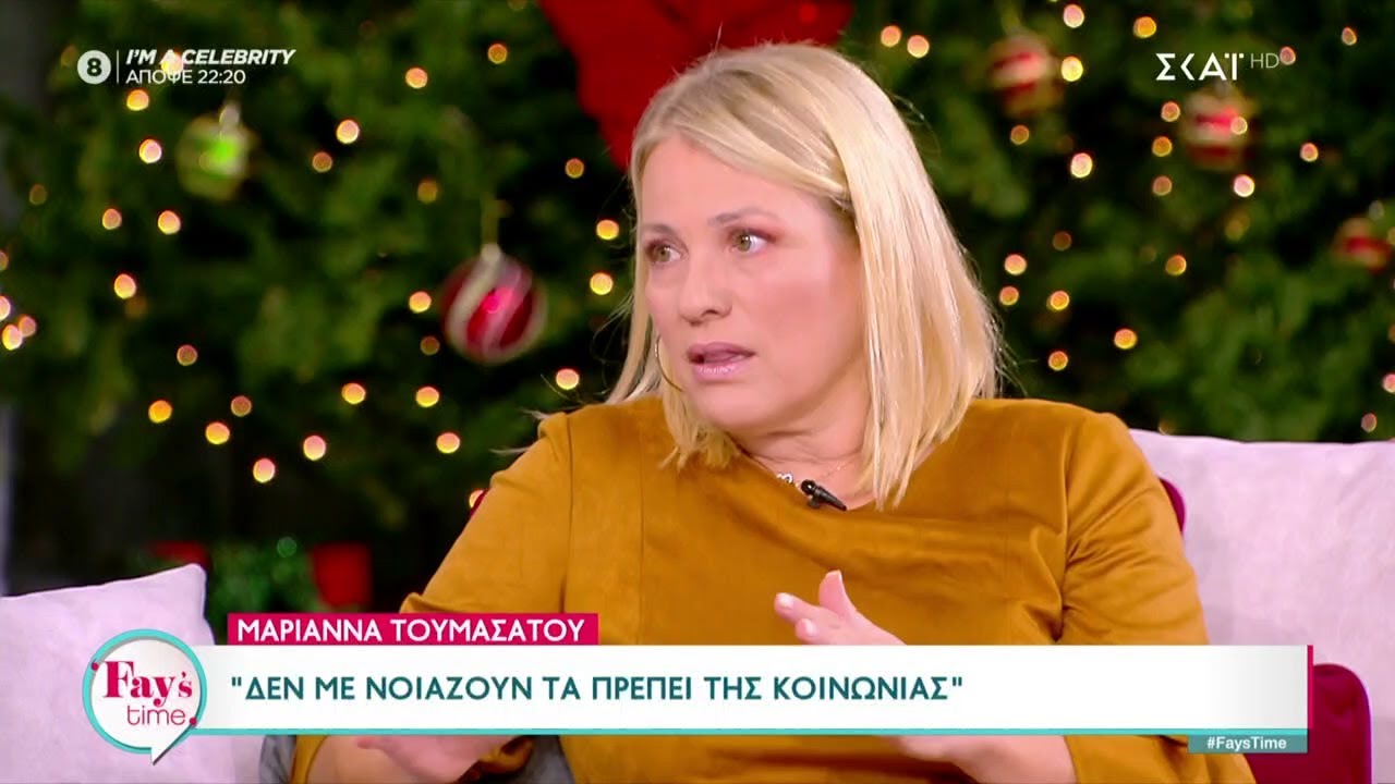 Καλεσμένη της Φαίης Σκορδά στο πλατό της εκπομπής Fay’s Time στον ΣΚΑΪ, βρέθηκε η Μαριάννα Τουμασάτου, το μεσημέρι της Τετάρτης,. Ανάμεσα σε άλλα η δημοφιλής ηθοποιός αναφέρθηκε στα κοινωνικά πρέπει και την έντονη προσωπική της αντίθεση σε αυτά