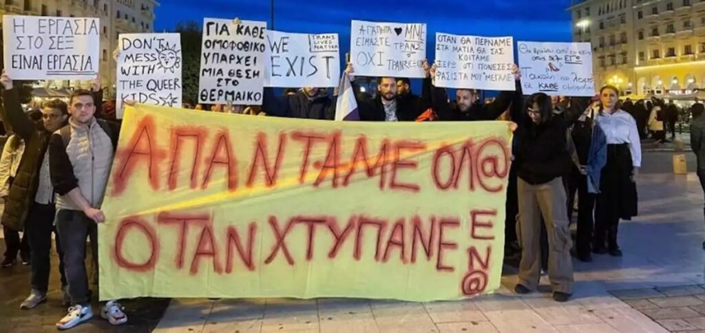 Tην ομοφοβική και τρανσφοβική επίθεση που δέχτηκαν δύο ΛΟΑΤΚΙ άτομα στο κέντρο της Θεσσαλονίκης καταγγέλλει το Σωματείο Υποστήριξης Διεμφυλικών καλώντας την Πολιτεία να λάβει τα απαραίτητα θεσμικά μέτρα και να αποδοθεί Δικαιοσύνη.